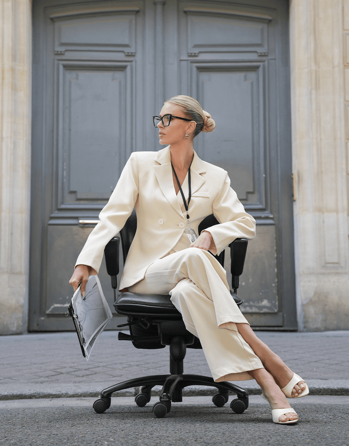 Details: Tailored fit / two buttons / V-neck / shoulder pads / long sleeves / faux pocket on left chest